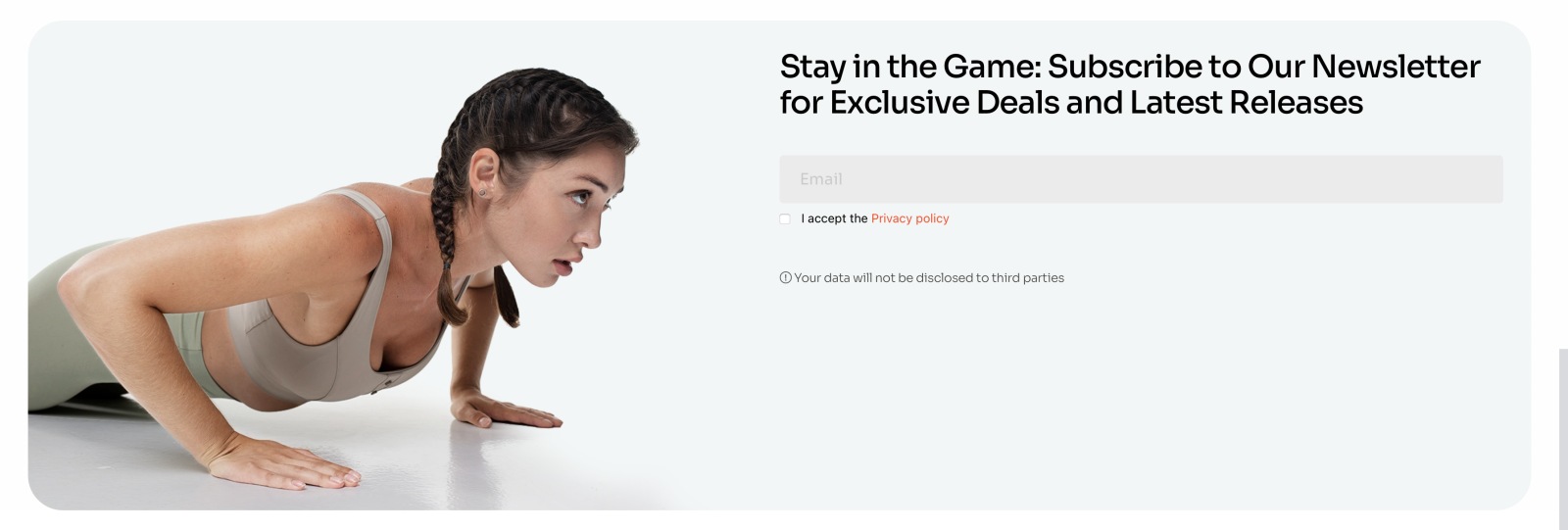 The ECWID integration brings a powerful e-commerce element to the website, facilitating smooth transactions and a secure shopping experience. Customers can browse, select, and purchase their favorite sportswear items with ease, thanks to the seamless integration of this robust online store solution.